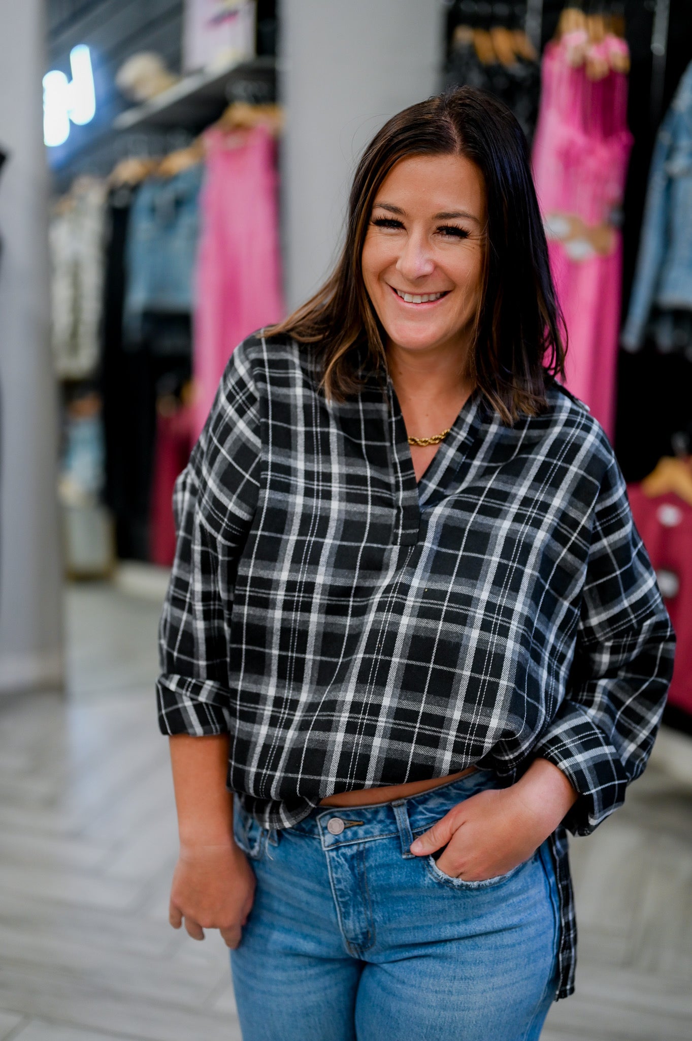 Meet your newest wardrobe must-have – our Tamra pullover Shirt. She is featured in a soft plaid with a relaxed fit but elevated in style. Pair with tailored pants and heels or denim and sneakers for ultimate versatility. A shirt that effortlessly takes you from chic to casual.