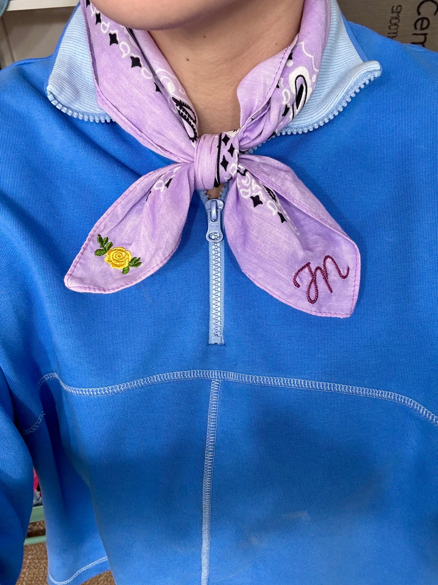 Meet your new everyday signature piece. Our custom embroidered bandanas are designed to be as unique as you are—made just for you, stitched locally, and finished with thoughtful details that make all the difference.