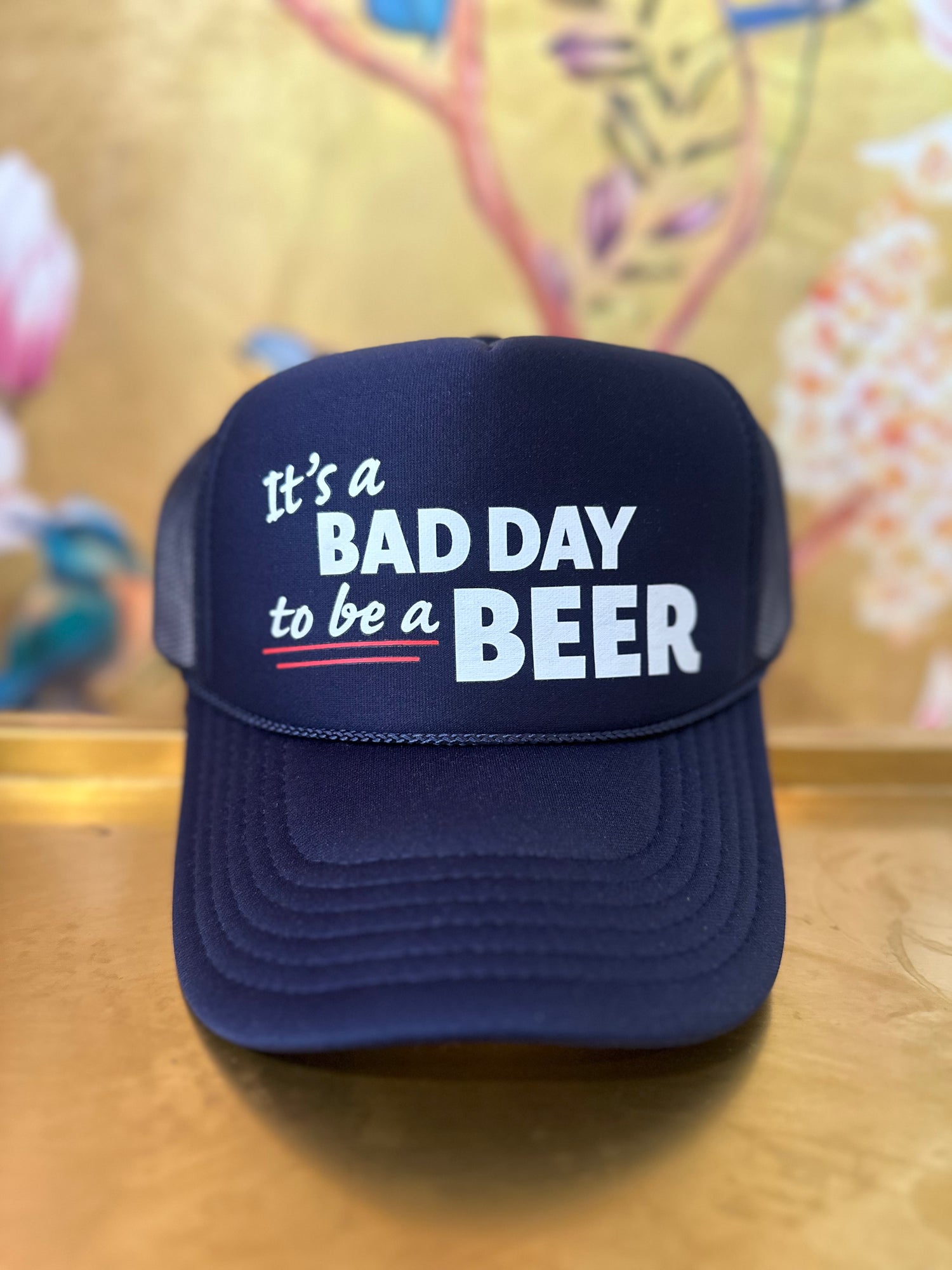 Don't let a bad day keep you down, wear the Its a bad day to be a Beer Trucker Hat instead! This quirky and playful trucker hat is perfect for any beer lover who doesn't take themselves too seriously. With a unique design and comfortable fit, you'll be sure to turn heads and spread some cheer.