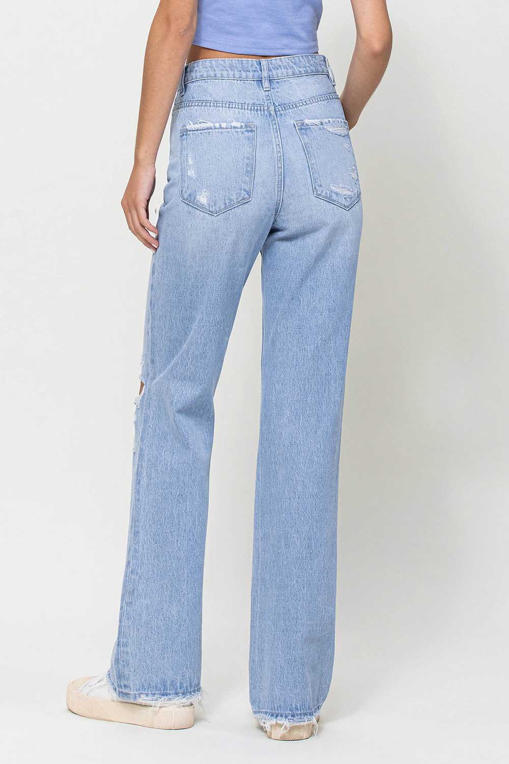 Get ready to rock a vintage look with our Kimberly Jeans! These non-stretch denim jeans feature a super high rise waist and a flared leg for that 90's vibe. With distressed detailing and a full length, these jeans will make you stand out from the crowd. Available in size 26 and perfect for any fun-loving fashionista!