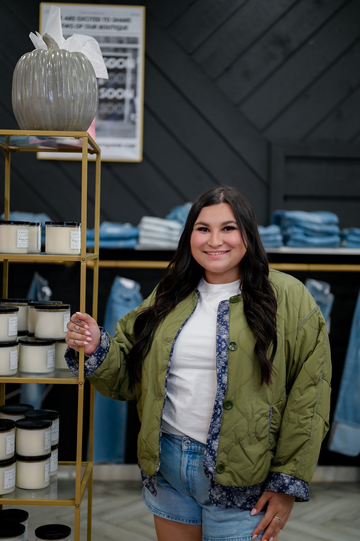 Woven Nylon Buttondown Round Neck Long Sleeve Quilted Padded Bomber Jacket With Front Pockets And Paisley Print Trim Detail
