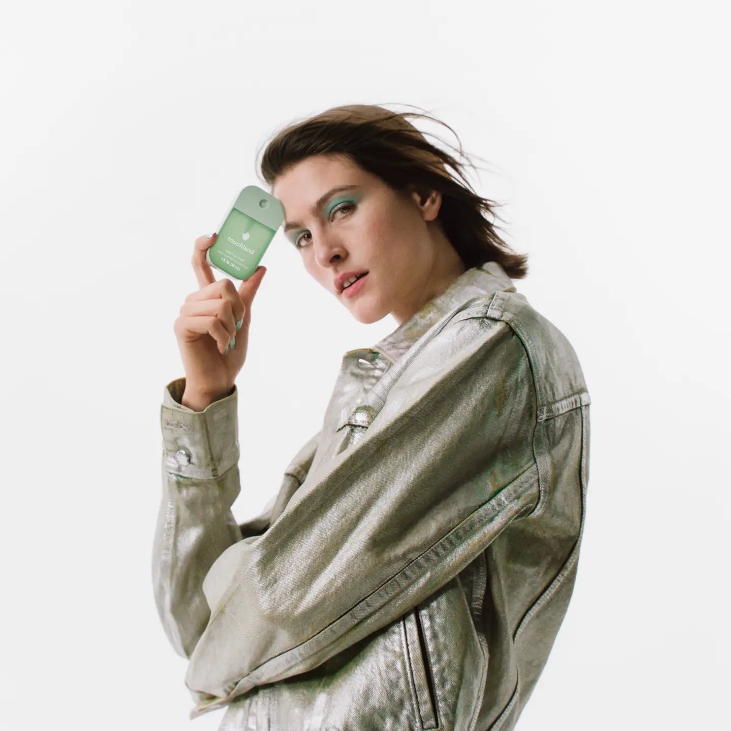 An ultra-soothing hand sanitizer enriched with Madecassoside and Niacinamide, leaving hands sanitized, hydrated, and soothed. Lily of the Valley Scent: Gentle and pure. Fresh lily of the valley and watery cucumber intertwines with sea salt, capturing the feeling of a tranquil spring day. TOP NOTES: Watery Cucumber, Crisp Lemon. HEART NOTES: Lily of the Valley, Jasmine Petals. BASE NOTES: Sea Salt, Soft Musk. BENEFITS: - Soothing - Formulated with Niacinamide to help soothe skin. - Hydrating - Enriched with Centella Asiatica Leaf Extract to help hydrate skin - Dermatologically tested and safe for sensitive skin. - Lightweight - Non-sticky and fast-absorbing formula delivered in a micro-mist. - Formulated without phthalates, sulfates, and dyes. - Ethically crafted - Vegan and cruelty-free. - Travel-friendly 1 FL. OZ. (30 mL).