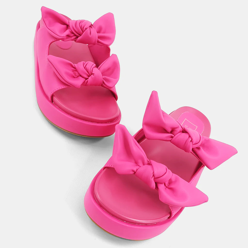 Crafted from soft faux leather, our KIKI flatform sandals feature two delicate bows and rest on a comfortable wedge platform, making them perfect for stylish all-day wear.