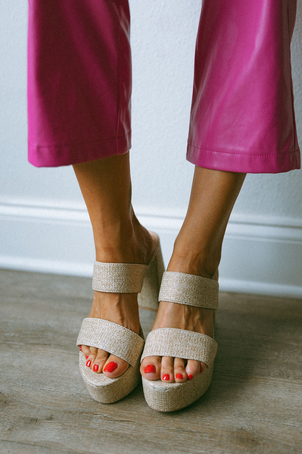 With a double vamp for extra support, a chunky heel, and an ultra-elevated platform sole, the Nice Platform Sandal is the perfect vacation staple this season. Finished in trend-setting straw raffia, it's a heel that's guaranteed to make you look extra NICE, everywhere you go.