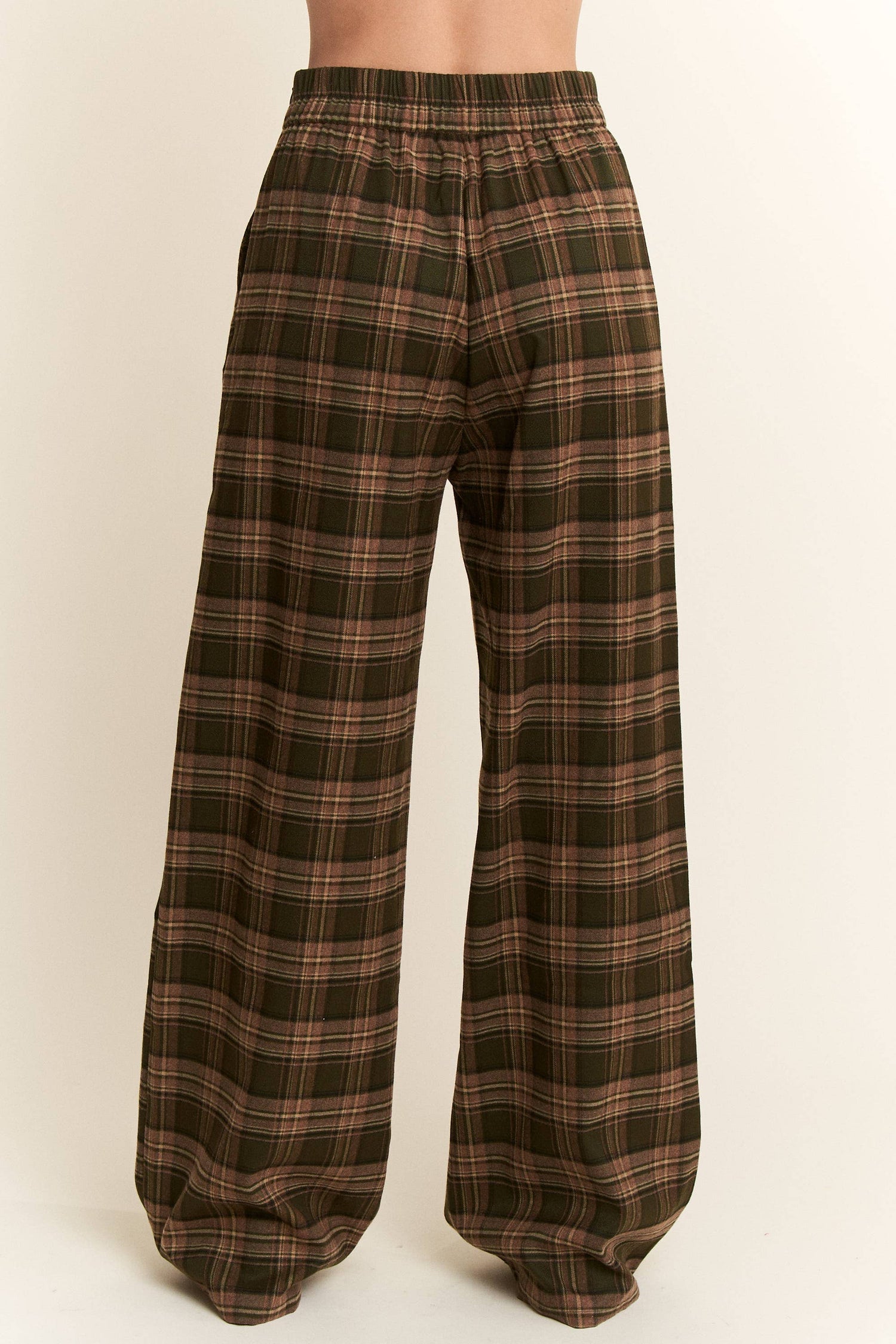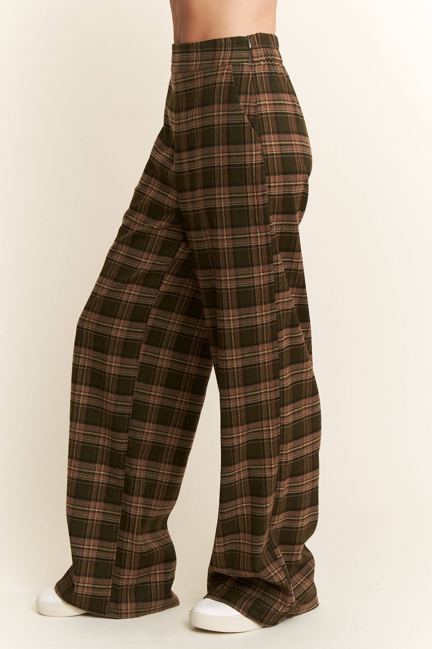 PLAID WIDE LEG SOFT DRESS PANTS - Pockets front only - Elastic waistband - Full length/floor length - Pattern - Soft material - Multicolor - Hip zipper 58%POLYESTER, 38%RAYON, 4%SPANDEX