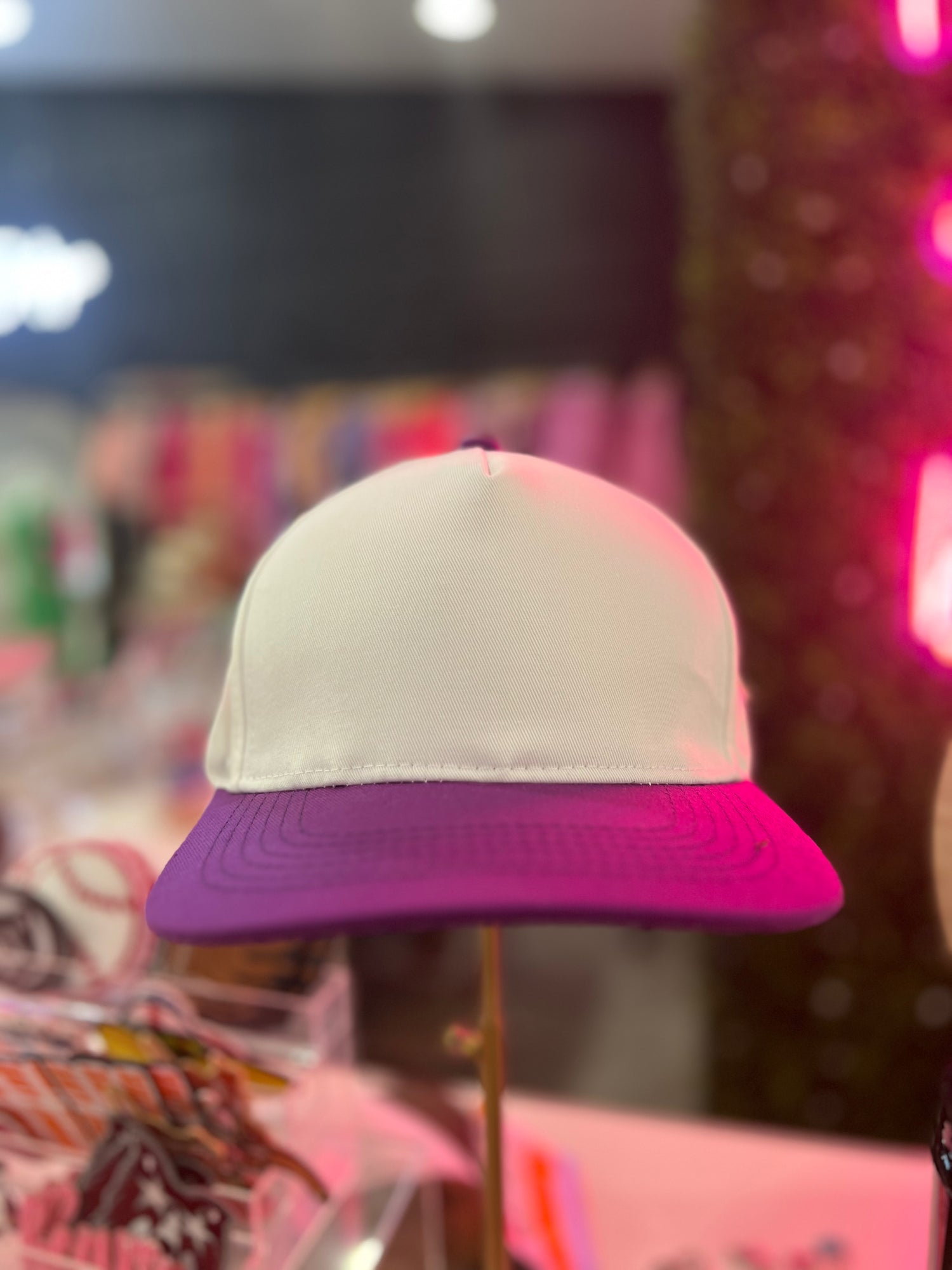 Purple and white hat