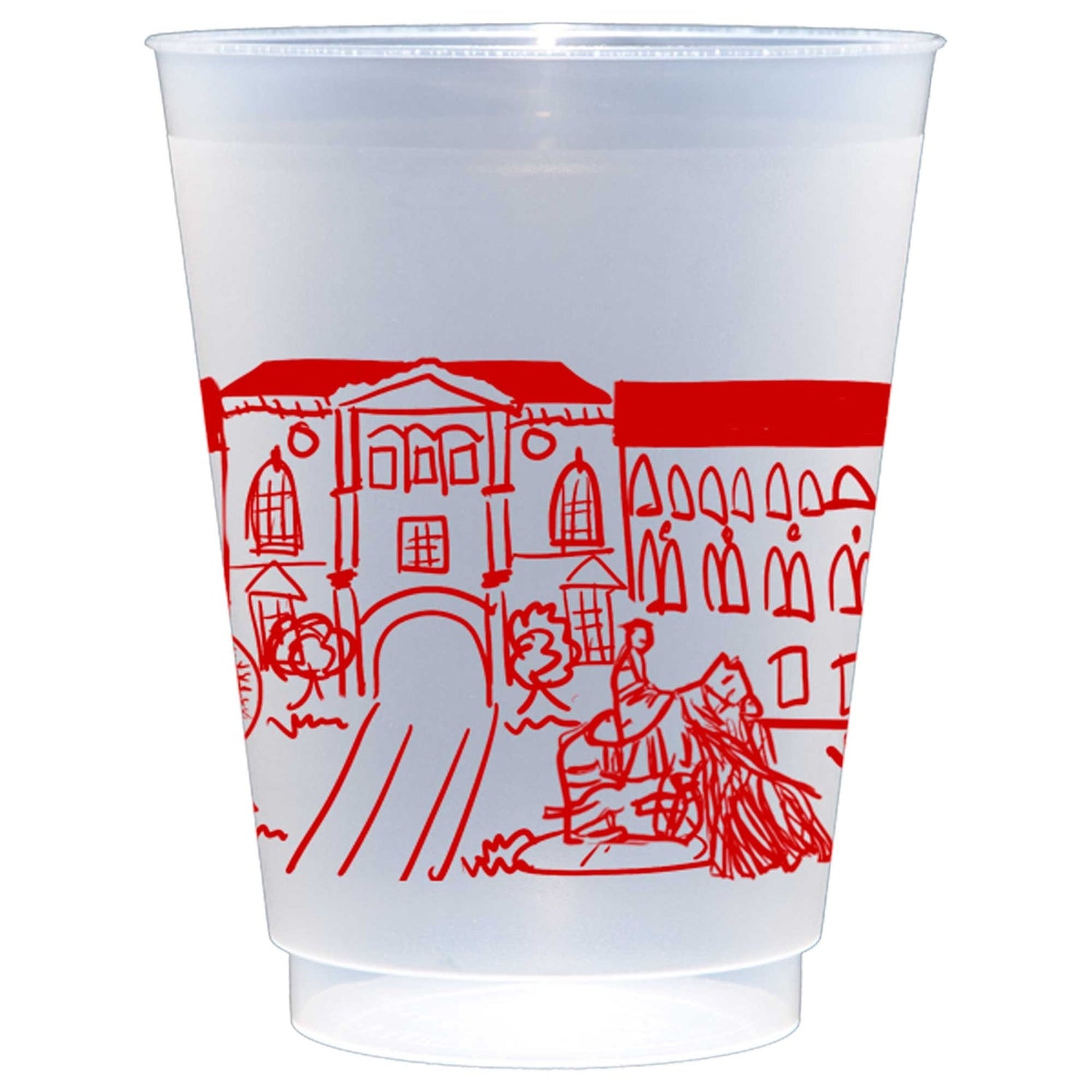 Our hand drawn red roadie cups show landmarks of the Texas Tech University campus in Lubbock, Texas. These make a great tailgate cup graduation party cup. Officially Licensed Collegiate Product.